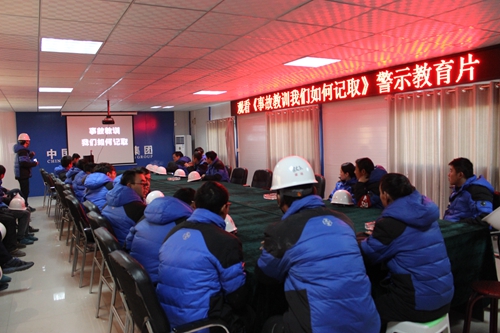 公司董事长、党委书记夏必安主持公司员工观看安全警示教育片