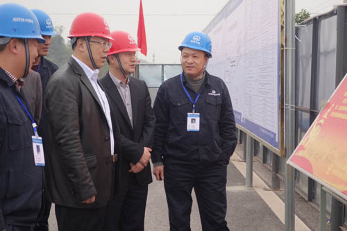 何梦通一行直奔施工现场,查看了项目部施工现场,听取项目经理关于王家庄车站及站后折返线的图纸设计汇报,并详细询问了施工进展情况。强调按照设计图纸施工,确保安全质量达标。在项目部贯彻落实“五保四创”举行的“党团携手并肩 共保安全质量”暨“安全卫士百日竞赛”活动宣誓签字展板旁,表扬了项目部党建带团建意识浓厚,把党员先锋模范作用落到了实处,充分带动了青年团员争当安全卫士,发挥青年突击作用。