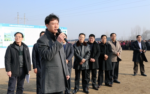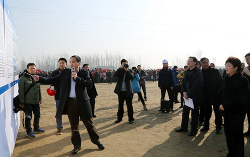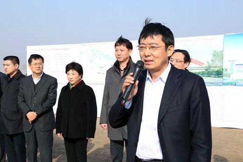 淮北市委副书记、市长黄晓武代表地方政府做了讲话,他首先向参建该项工程的中铁四局员工表示了节日的慰问,随后他说道这项工程是淮北市的第一条铁路客运专线,淮北市政府一定会全力支持该项工程,给施工单位创造良好的施工外部环境,让这条淮北市通往全国各地的快速通道能早日开通运营。