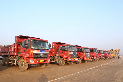 开工调研活动现场,整齐划一的机械设备展示了中铁四局强劲的企业实力