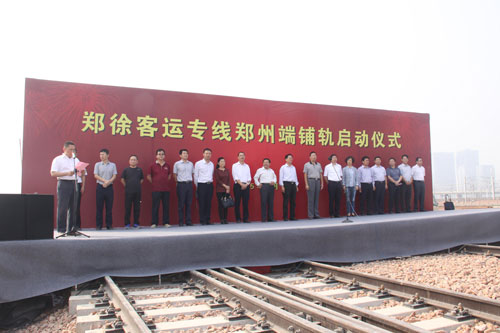 本网郑州讯 9月25日上午,由中铁四局施工郑州至徐州客运专线郑州端举行铺轨开工仪式,此次铺轨仪式由郑徐指挥部常务副指挥长范伟主持,郑西铁路客运专线有限公司总经理张锦耀、副总经理兼总工程师李兵选、中铁四局副总经理耿锦、中铁四局一公司总经理鲁和友以及地方政府、郑徐客专设计、监理、咨询和施工单位相关人员参加了铺轨仪式,这标志着郑徐客专建设取得了重要的阶段性成果,进入了一个崭新的阶段,将从线下主体工程施工全面转入铺轨、四电施工阶段。