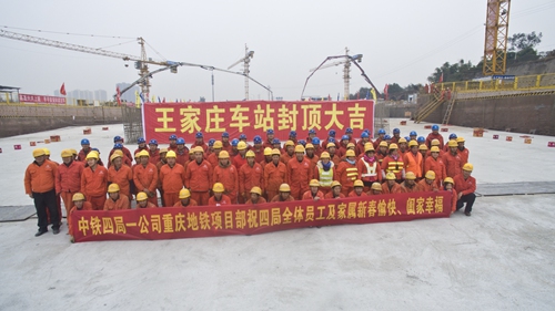 本网重庆讯 2016年1月27日上午11点,由中铁四局一公司承建的重庆轨道交通最大地下车站─轨道交通10号线王家庄站主体结构顺利封顶,为十号线的按期开通运营奠定了坚实基础。