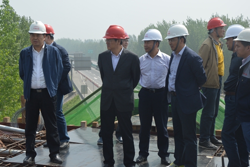 张锦耀一行深入施工一线,主要对跨连霍高速112米系杆拱进行了详细巡查,在听取了项目经理关于施工组织、生产进度、样板工程创建和安全文明施工等方面工作的汇报后,张锦耀对淮萧一分部的工期进度和工程质量表示满意。他要求项目领导合理组织施工生产,严抓安全质量管控,加强过程控制和检查力度,继续抓好技术管理和人才培养,努力打造精品工程,树立良好企业形象。
