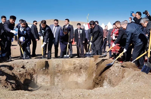 中蒙两国嘉宾一同挥锹为开工动土