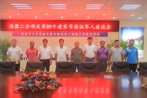 本网萧县讯 在建军89周年来临之际,淮萧客车联络线二分部于7月31日在会议室召开庆第89个建军节退伍军人座谈会,项目部9名退伍军人共同回顾了人民军队的光辉历史,畅谈昔日军旅生涯。