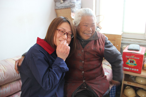 女员工的到来给老人们带来了欢乐与心灵的慰藉